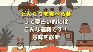 夢占い【夢占い】どんぐりを食べる夢の意味とは?運勢がポッチャリ診断? 【夢占い】どんぐりを食べる夢を見ましたか?それは、あなたの地道な努力が報われ、幸運が訪れることを示す最高の吉夢です。恋愛運や金運、仕事運が大きく上昇する前兆で、もしかしたら宝くじ当選のサインかも…?美味しい、まずい、たくさん食べるなど、夢の状況別に隠されたあなたの深層心理と未来へのメッセージを詳しく解説します。2025.09.29夢占い