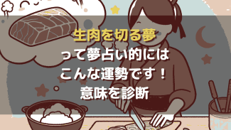 夢占い【夢占い】生肉を切る夢の意味とは?運勢をスパッと診断 「生肉を切る夢」を見てしまった…何か不吉な予感?実はそれ、宝くじが当たる前兆や人生が好転する大吉夢かもしれません。しかし、状況によっては対人トラブルや健康悪化を示す危険な警告夢にも…。あなたの見た夢が伝える本当の意味を、肉の種類や状況別に詳しく解説。深層心理からの重要なメッセージを見逃さないで。2025.09.30夢占い