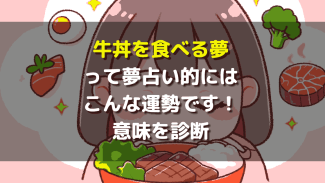 夢占い牛丼を食べる夢の意味とは?夢占いで運勢をこっそり大盛り診断 【夢占い】牛丼を食べる夢は幸運のサイン?それとも何かの警告…?この夢は、あなたの金運・仕事運・恋愛運が大きく動く前兆かもしれません。夢の中の状況別に、隠された深層心理と未来へのメッセージを徹底解説。あなたの見た夢に隠された本当の意味を知り、運気を上げるヒントを見つけませんか?2025.10.07夢占い