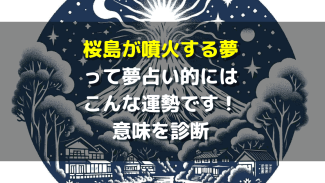 夢占い桜島が噴火する夢の夢占い!爆発的な運勢の意味を診断 「桜島が噴火する夢」の衝撃で目覚めたあなたへ。その夢、もしかしたら宝くじ高額当選を知らせる大吉夢かもしれません!一方で、感情の爆発や対人トラブルを警告する意味も…。金運・恋愛運・仕事運はどうなる?噴火から逃げる・助かるなど、状況別にあなたの深層心理と未来を読み解きます。2025.10.15夢占い