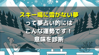 夢占い【夢占い】スキー場に雪がない夢の意味とは?ガックリ運勢を診断 【夢占い】スキー場に雪がない夢を見て不安なあなたへ。その夢、実は人生が好転する重要なサインかもしれません。計画が狂う警告としての意味だけでなく、恋愛や仕事の停滞期を抜け出すための深層心理からのメッセージが隠されています。夢が示す状況別の詳しい意味から、今すぐできる運気アップの対処法までを徹底解説。あなたの心のモヤモヤを解消し、前向きな一歩を踏み出すヒントがここにあります。2025.10.18夢占い