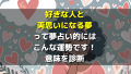 好きな人と久しぶりに会う夢が夢占い的に良い夢であるか悪い夢であるかは、夢の要素や状況によって異なります。夢者がその夢から得られる意味や運勢を正確に理解するためには、夢の中での出来事や感情に注意を払い、夢占いのキーポイントを把握することが重要です。