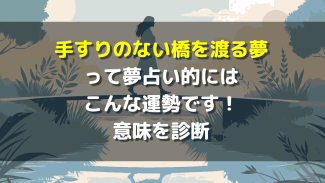「手すりのない橋を渡る夢」を見て起きた朝、不安な気持ちになっていませんか?実はこの夢、人生の大きな転機や深層心理からの重要なメッセージなんです。恐怖の正体はストレス?それとも予知夢?この記事では、落ちる・這って進むなどの状況別診断から、仕事・恋愛運への影響まで徹底解説します。怖い夢を吉夢に変えるための具体的な対処法も紹介。不安を解消し、一歩踏み出すためのヒントがここにあります!