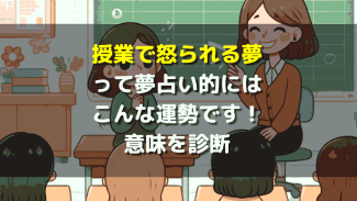 夢占い【夢占い】授業で怒られる夢の意味とは?運勢をガミガミ診断! 授業で怒られる夢を見て、冷や汗をかいて起きたことはありませんか?「正夢になったらどうしよう」と不安になる必要はありません。実はこの夢、あなたの隠れたストレスや承認欲求、そして未来への重要なメッセージを映し出しているのです!この記事では、理不尽に怒られる、遅刻する、好きな人に怒られるなど、状況別の意味を夢占いで徹底解説。意外な「吉夢」の可能性も?心のサインを読み解き、運気を好転させるヒントを今すぐチェックしましょう!2024.05.20夢占い