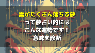 夢占い雷がたくさん落ちる夢の意味は?夢占いでシビれる運勢をバリバリ診断 雷がたくさん落ちる夢を見てドキドキしていませんか?実はその夢、人生が劇的に変わる前触れかもしれません!「宝くじ高額当選の予兆」という噂は本当なのか、それとも「ストレス限界」の警告なのか。この記事では、夢占いの観点から「雷がたくさん落ちる夢」の意味を状況別に徹底解説します。金運アップのチャンスを逃さないための行動や、気をつけるべき注意点まで網羅。あなたの夢が伝える本当のメッセージを今すぐチェックして、運気を味方につけましょう!2024.04.14夢占い