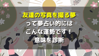 夢占い友達の写真を撮る夢の意味とは?夢占いで運勢をパシャリと診断 【夢占い】友達の写真を撮る夢を見てドキッとしたあなたへ。その夢、実はあなたの深層心理からの重要なメッセージかもしれません。好きな人や異性が登場する意味、笑顔や無表情が示す対人運・恋愛運の行方を徹底解説。隠された承認欲求や警告のサインまで、状況別に夢が伝える本当の意味を紐解き、あなたの人間関係の悩みを解決するヒントをお届けします。2024.04.07夢占い