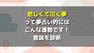 夢占い悲しくて泣く夢の意味とは?夢占いで涙腺崩壊な運勢を診断 「悲しくて泣く夢は不吉な予兆…?」いいえ、実は運気が急上昇する幸運のサイン「逆夢」かもしれません!夢占いが示す本当の意味とは?もしかしたら宝くじが当たる前兆かも…。登場人物や状況別に、あなたの深層心理と未来の暗示を詳しく解説します。起きたら泣いてた理由もスッキリ!2023.11.09夢占い