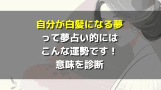 夢占い自分が白髪になる夢の意味とは?夢占いで突然の運勢を診断! 【夢占い】自分が白髪になる夢を見てドキッとしたあなたへ。それは、宝くじが当たる幸運の前兆かもしれません!しかし、実はストレスや疲労が溜まっているという警告の可能性も…。果たして吉夢か、それとも凶夢か。髪が全部白くなった、一部だけ、抜くなど、夢の状況別に隠されたスピリチュアルなメッセージを徹底解剖します。2024.05.24夢占い